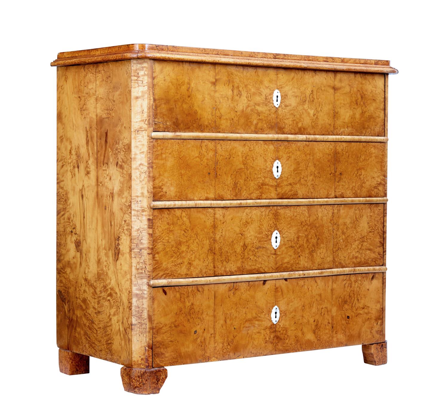 Mid 19th Century Burr Birch Secretaire Chest of Drawers