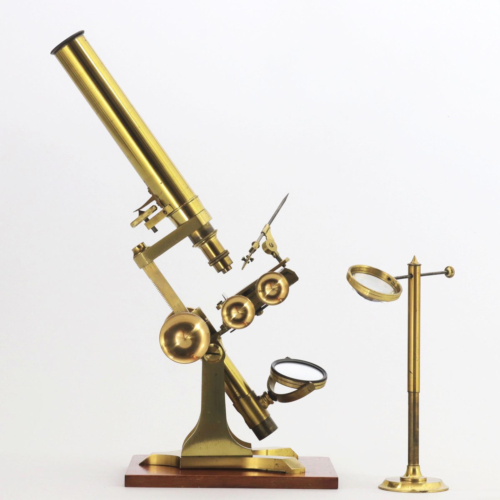 Mid 19th Century Cased Brass Bar-Limb Microscope with Magnifier c1850