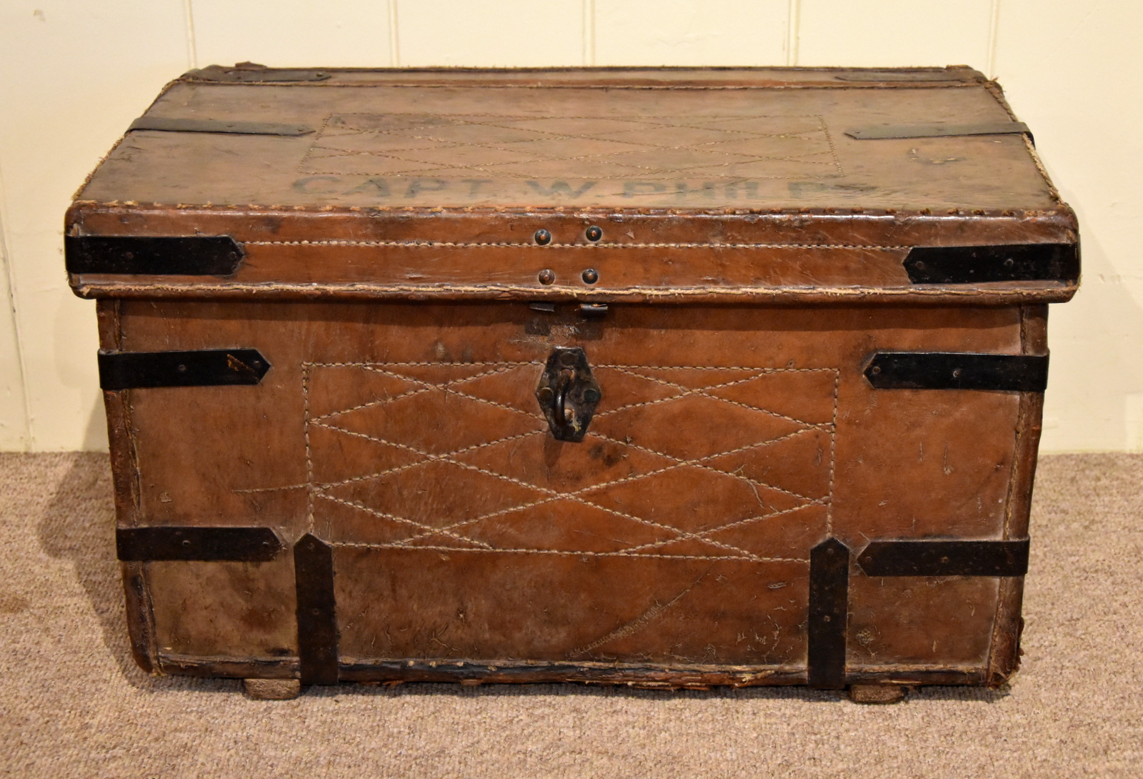 Mid 19th Century Leather & Iron Bound Trunk (1 of 5)