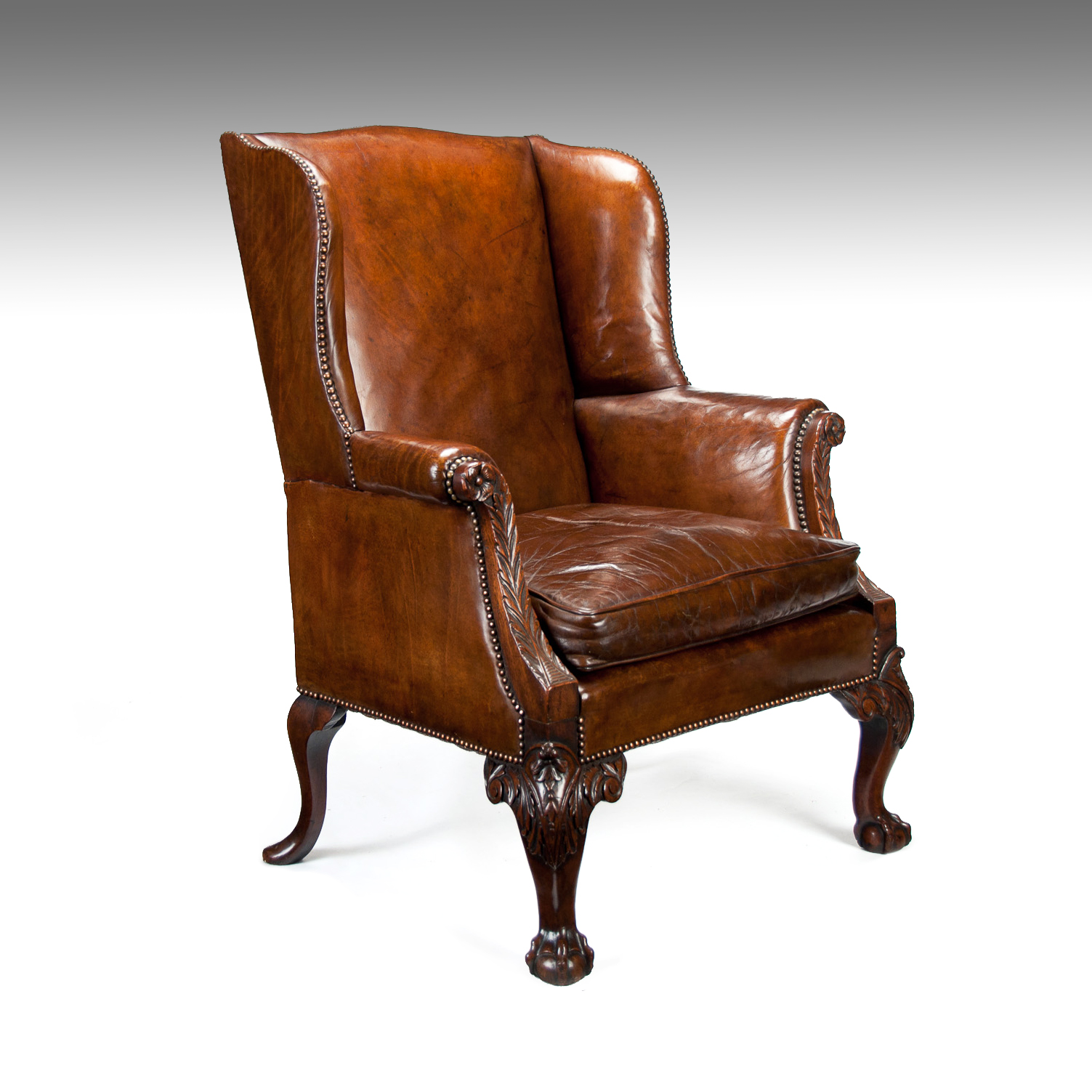 Mid 19th Century Mahogany Leather Wing Armchair (1 of 1)