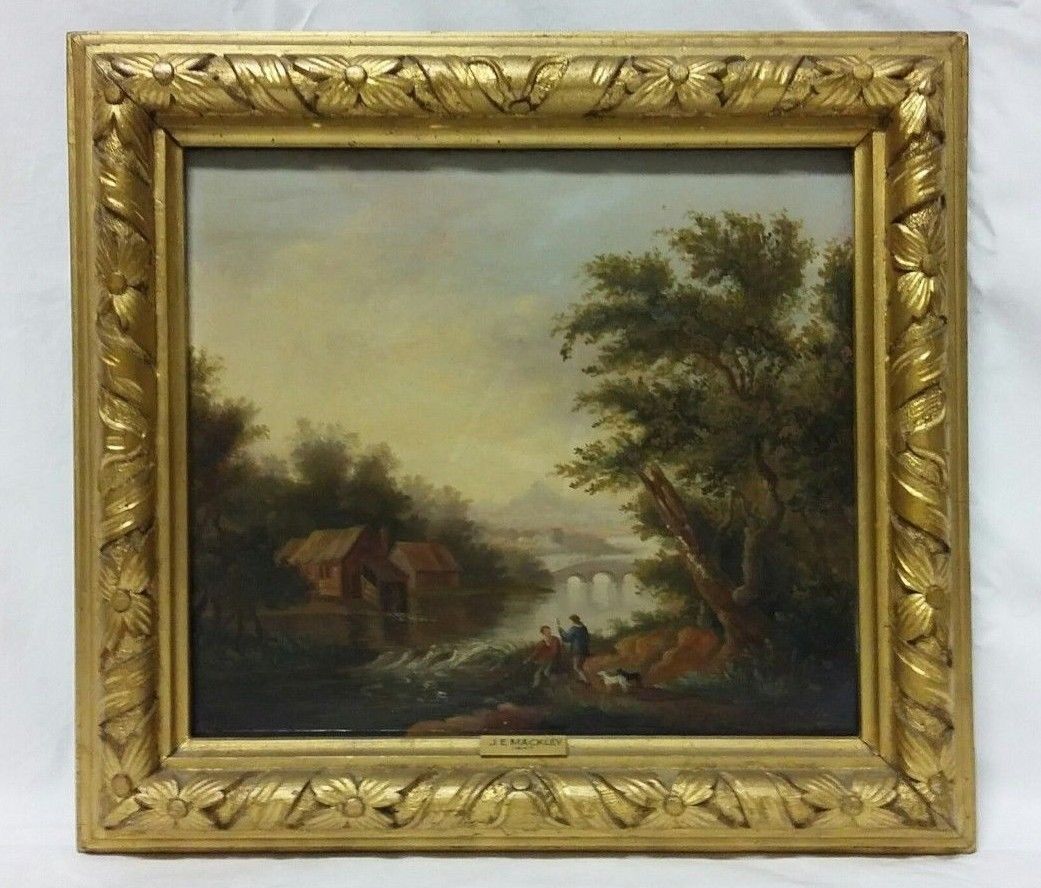 Mid 19th Century Oil On Oak Panel Landscape Painting Signed J E Mackley Dated 1847