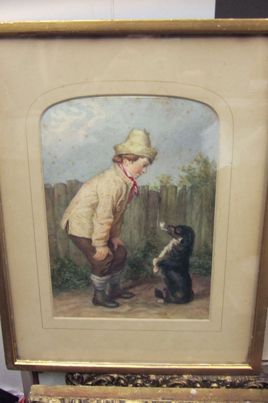 Mid 19th Century Watercolour of 'boy playing with a dog' (1 of 1)