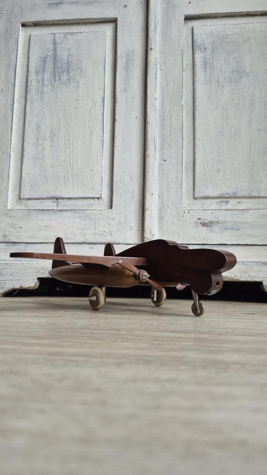 A one of a kind, distinctive hand made wooden model aeroplane dating from the 1940s, crafted as a desktop or display piece. This model reflects the understated elegance and practical craftsmanship of the wartime and immediate post war period.