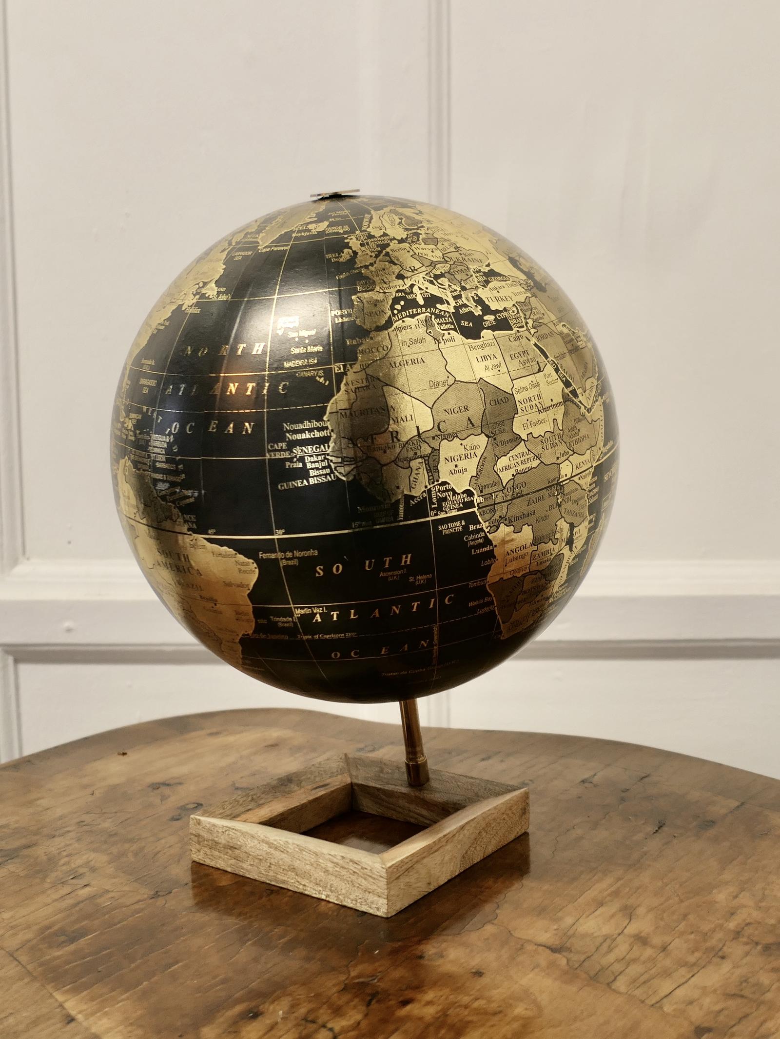 Mid 20th Century 12” Terrestrial Black & Gold Globe