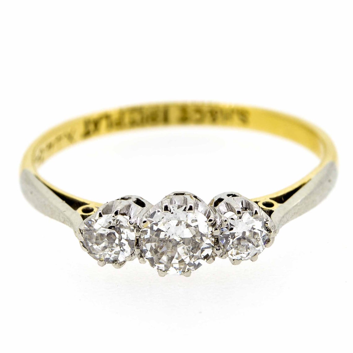 Mid 20th Century 18ct Yellow Gold Diamond Three Stone Ring