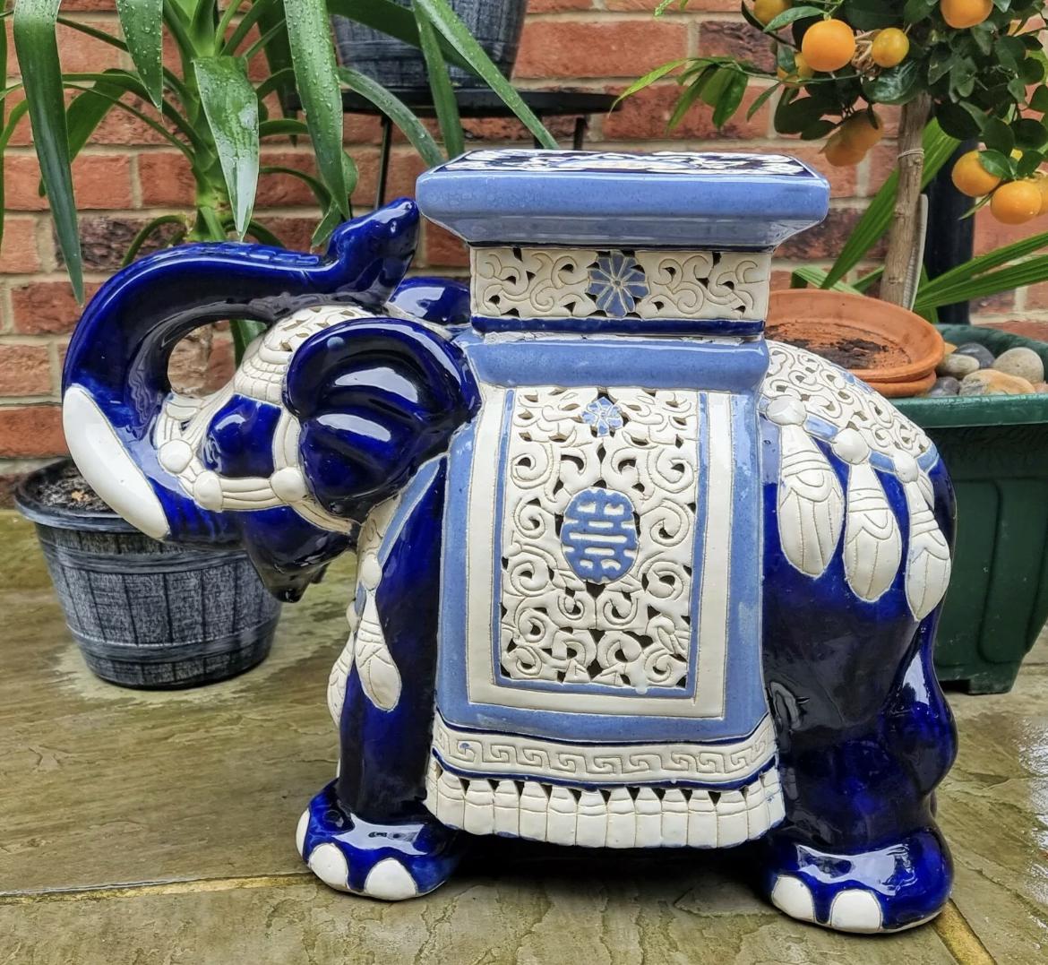 Mid 20th Century French Ceramic Hand-painted Elephant-form Garden Seat