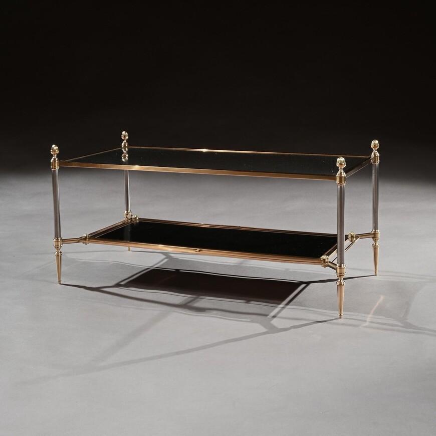 Mid 20th Century Maison Jansen Brass Steel & Leather Coffee Table