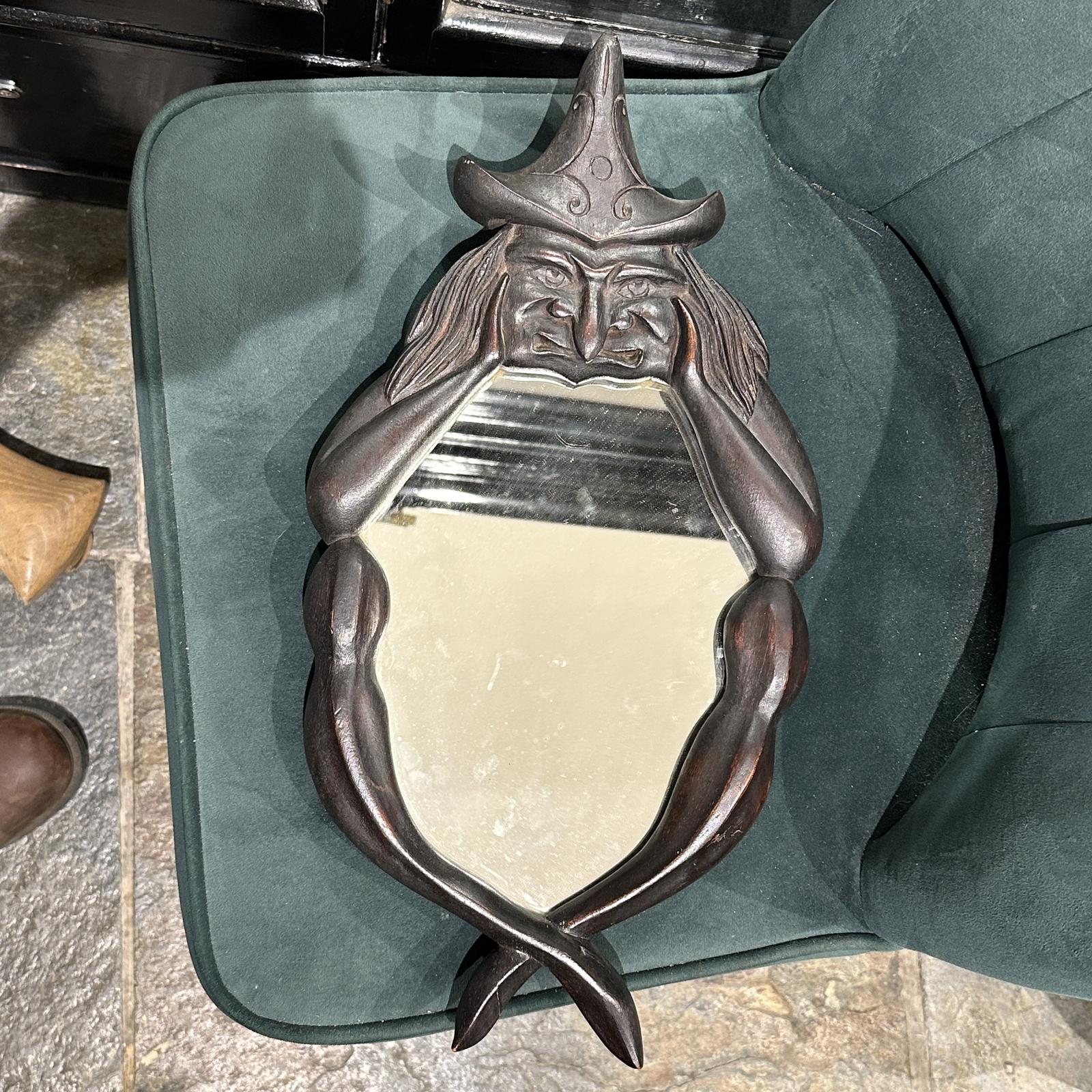 Mid Century Carved Folk Art Scrying Mirror (1 of 3)