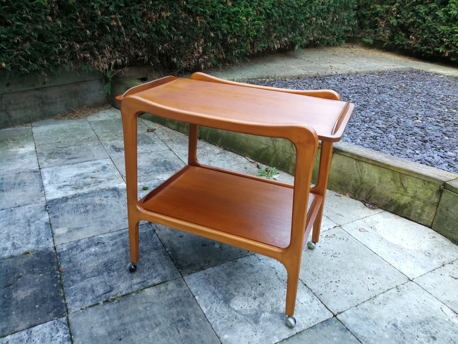 Mid Century Danish Style Teak Tea Trolley Serving Cart 1960s