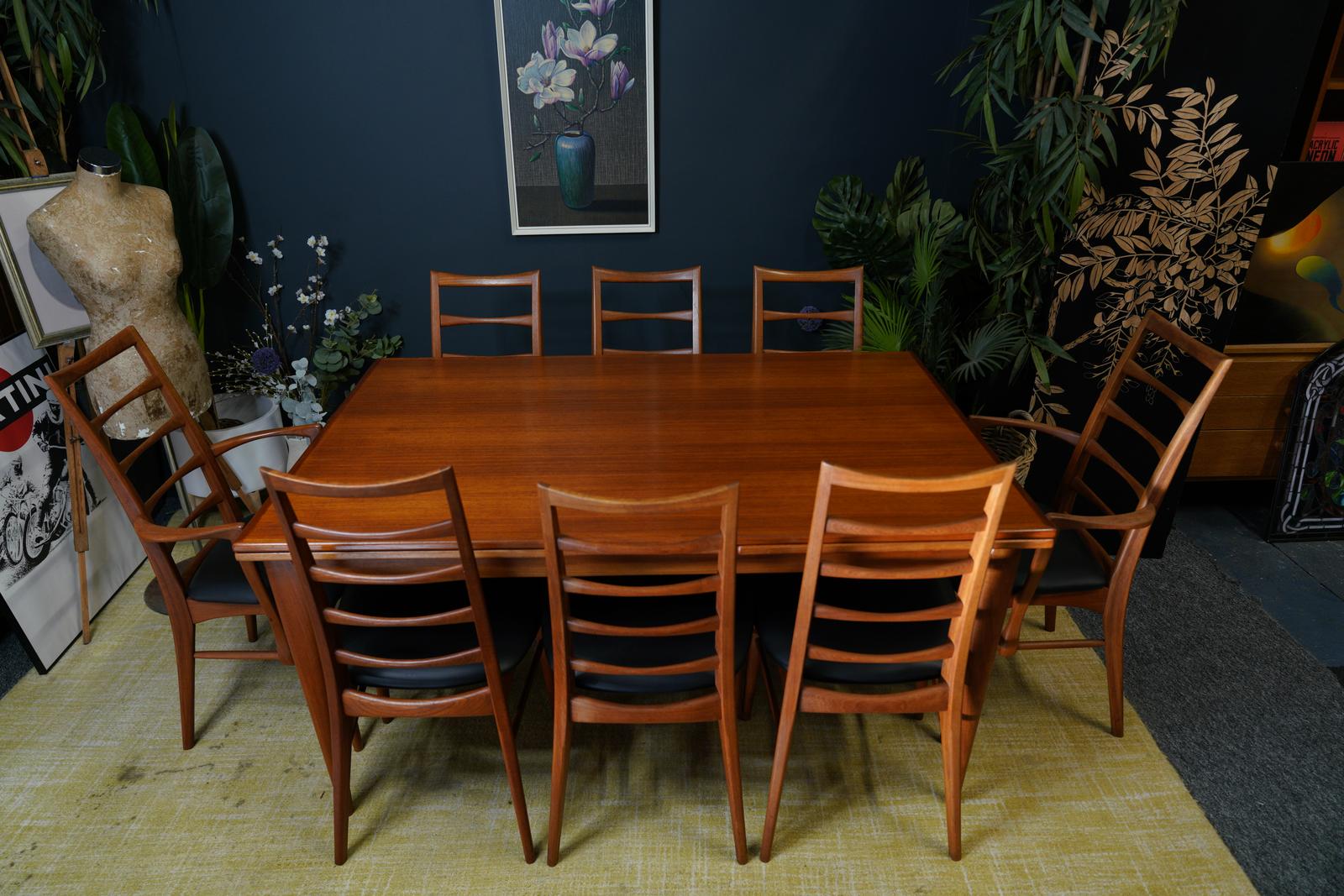Mid-century Danish Teak Extending Dining Table & 8 Ladder-back Chairs