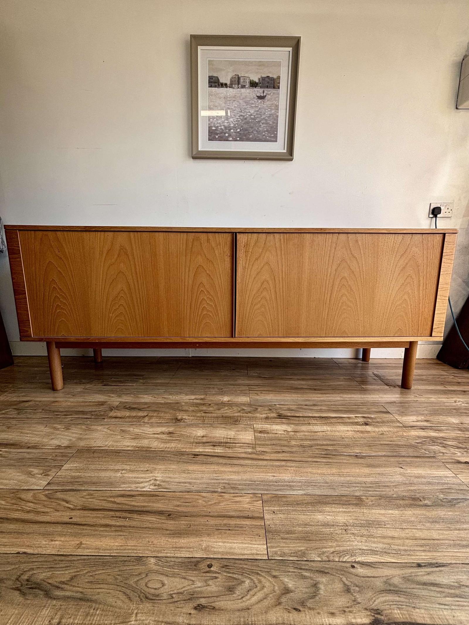 Mid Century Danish Teak Tambour Door Sideboard – Hornslet Møbelfabrik