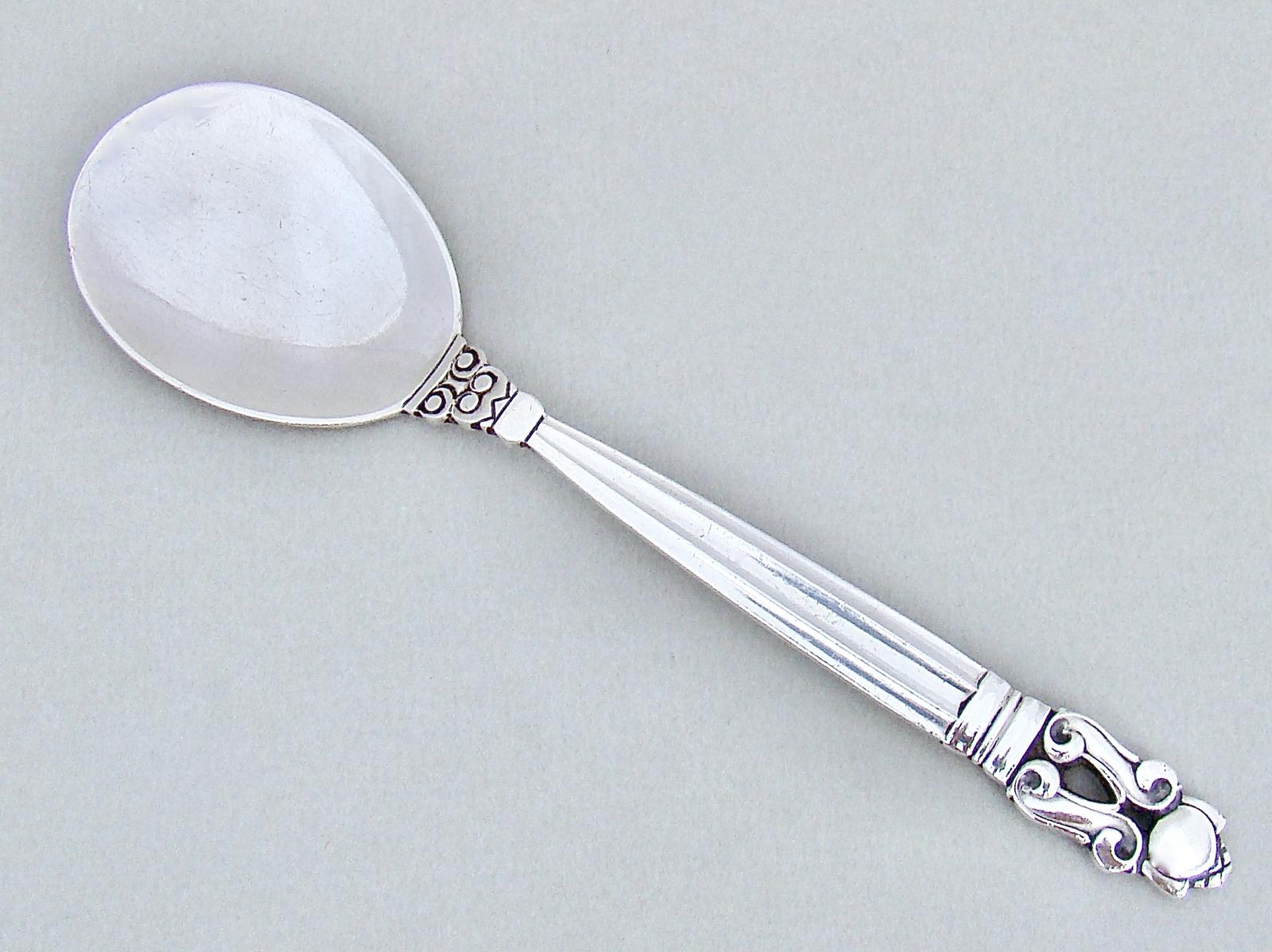 Mid Century Georg Jensen Sterling Silver Acorn Pattern Preserve Spoon