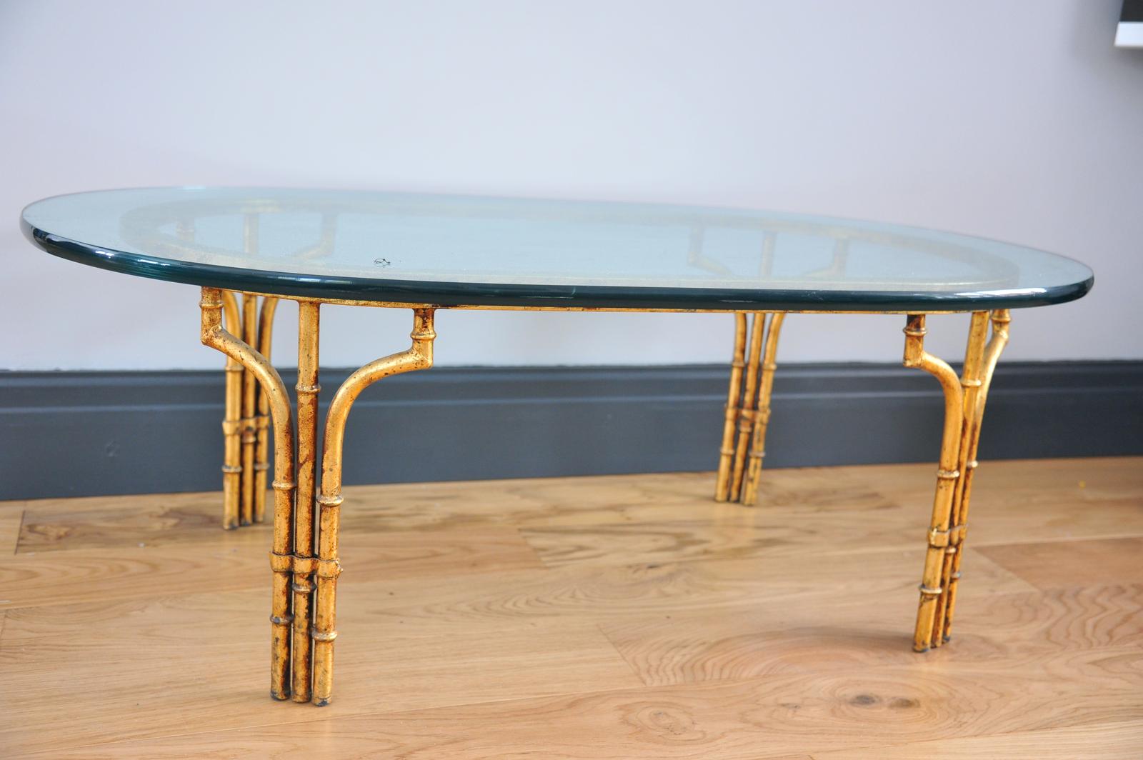 Mid Century Gilded Faux Bamboo Glass Top Occasional Table