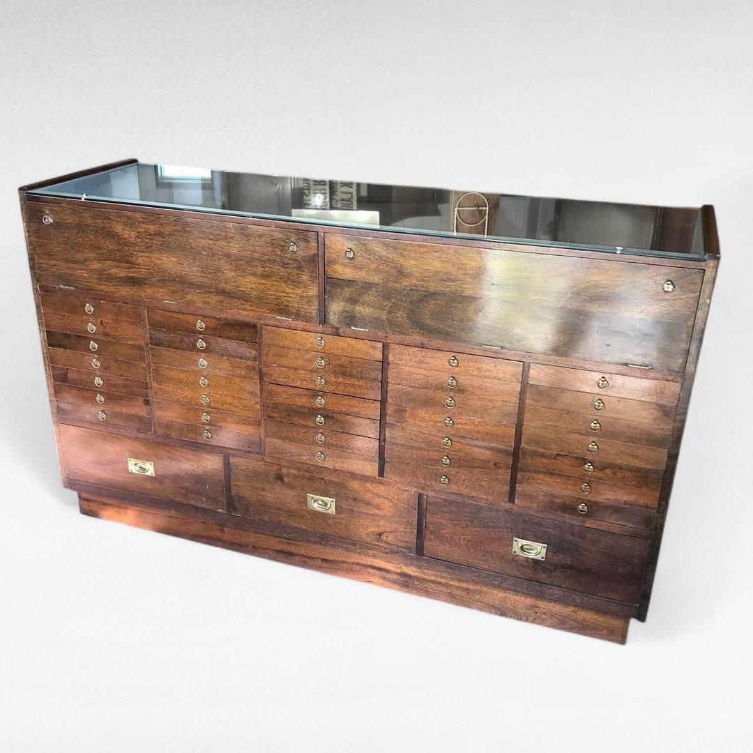 Mid Century Glass Top Shop Counter with 38 Drawers (1 of 26)