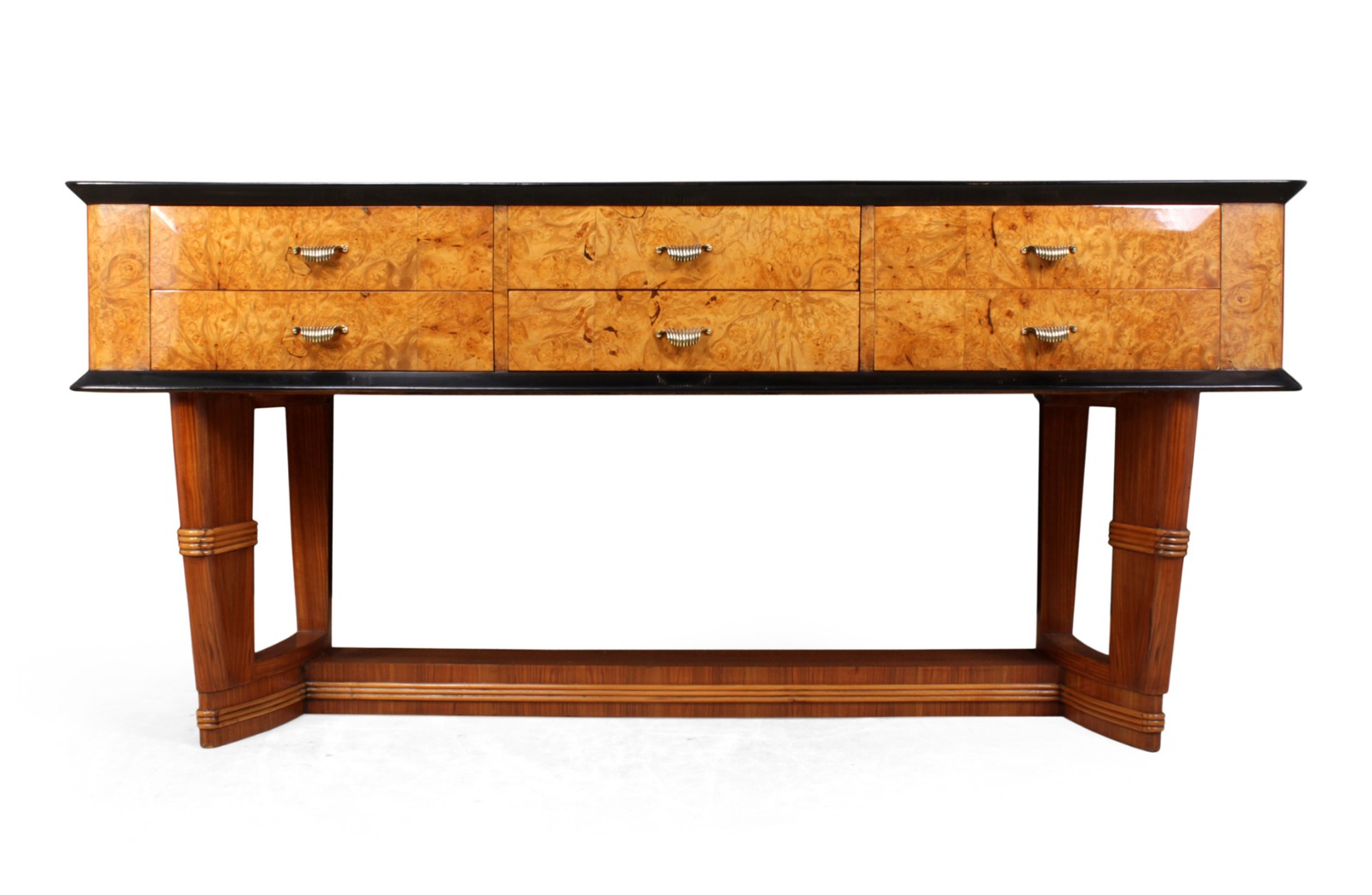 Mid Century Italian Console Table in Burr Maple