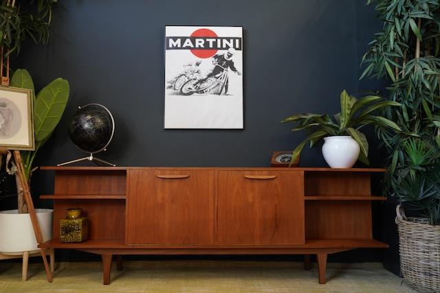 Mid Century Large / Long Sideboard Credenza Teak Open Sides