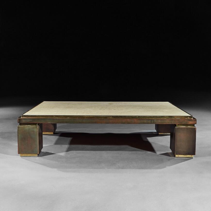 Mid-Century Modern Copper, Brass And Travertine Rectangular Coffee Table (1 of 5)