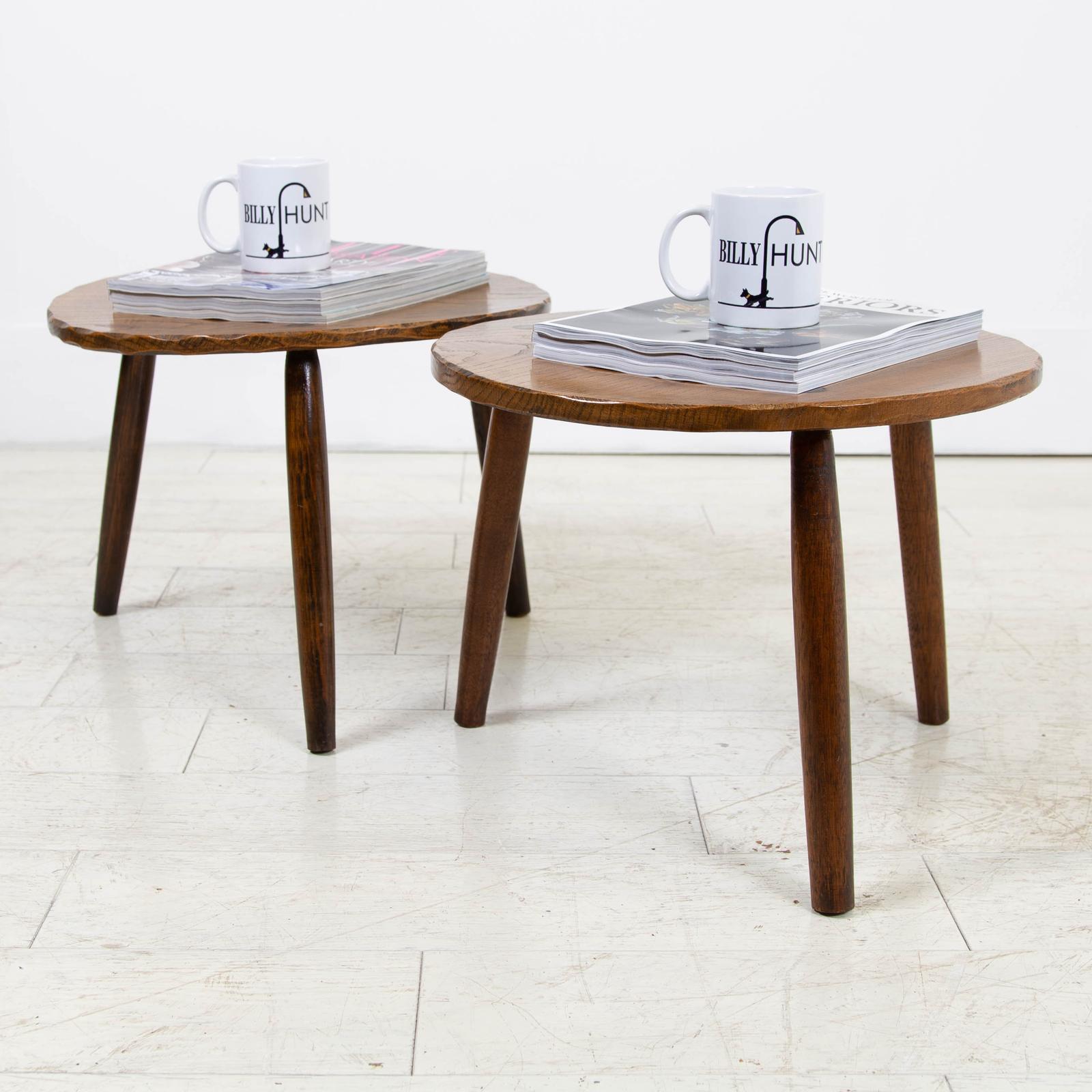 Mid Century Pair of Low Elm Topped 3 Legged Side Tables