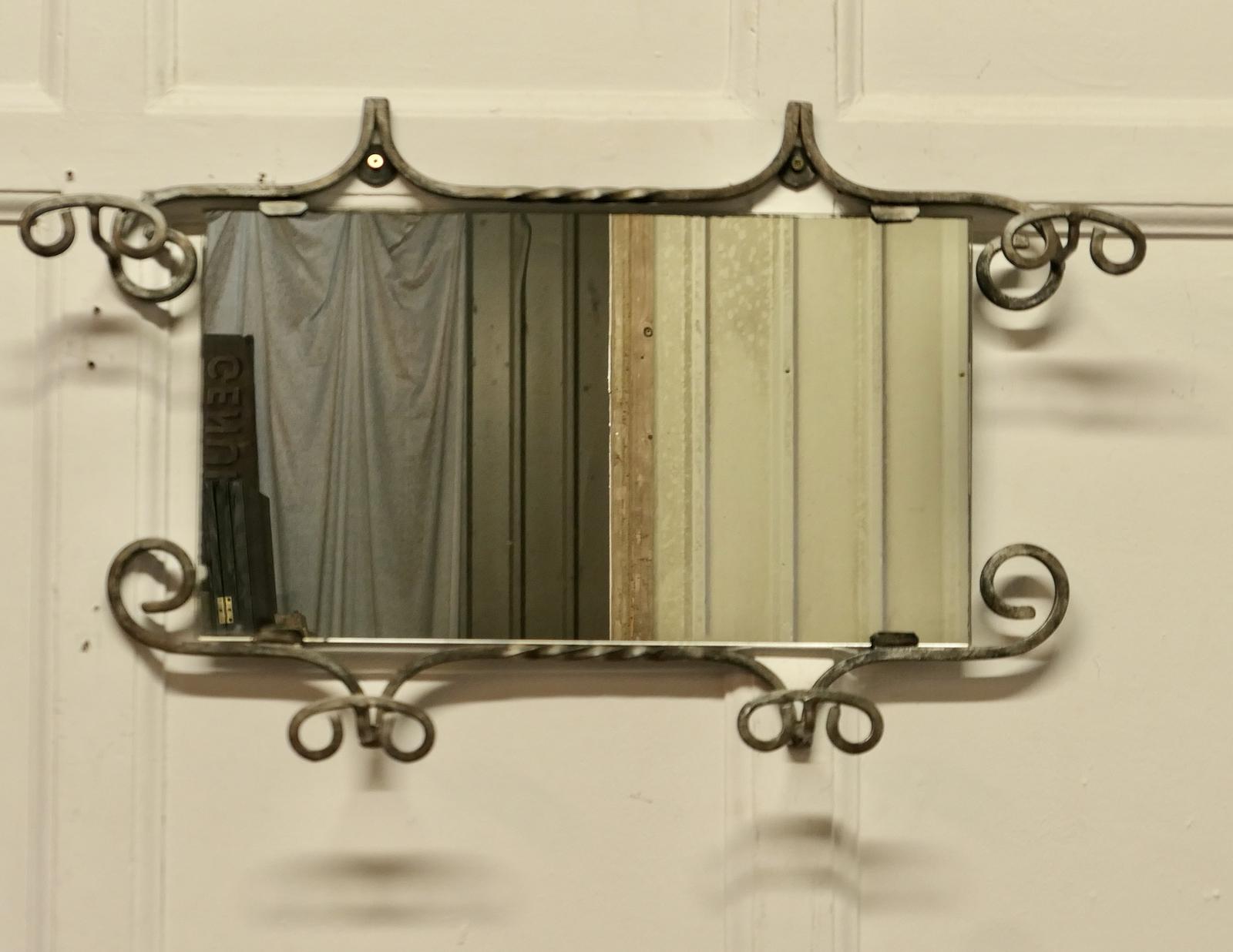 Mid Century Retro Wrought Iron Mirrored Hat & Coat Rack