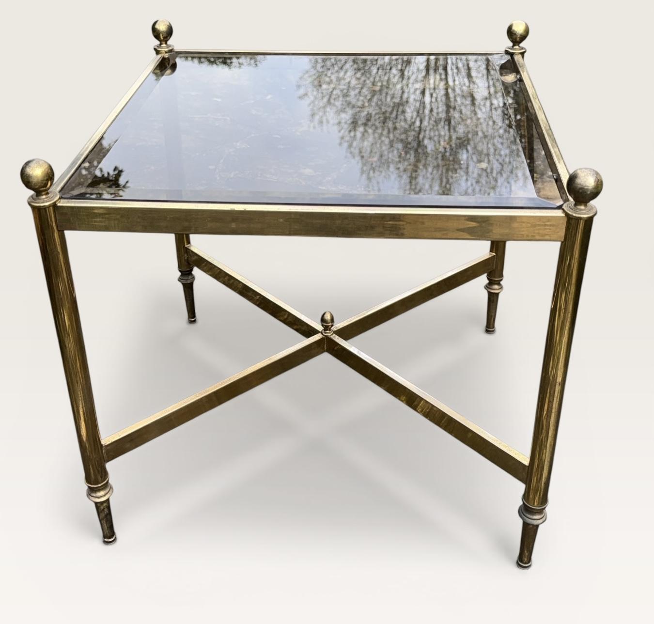 A very useful small size mid century side table, in brass with original finish, and original bevelled glass top. All in excellent condition.