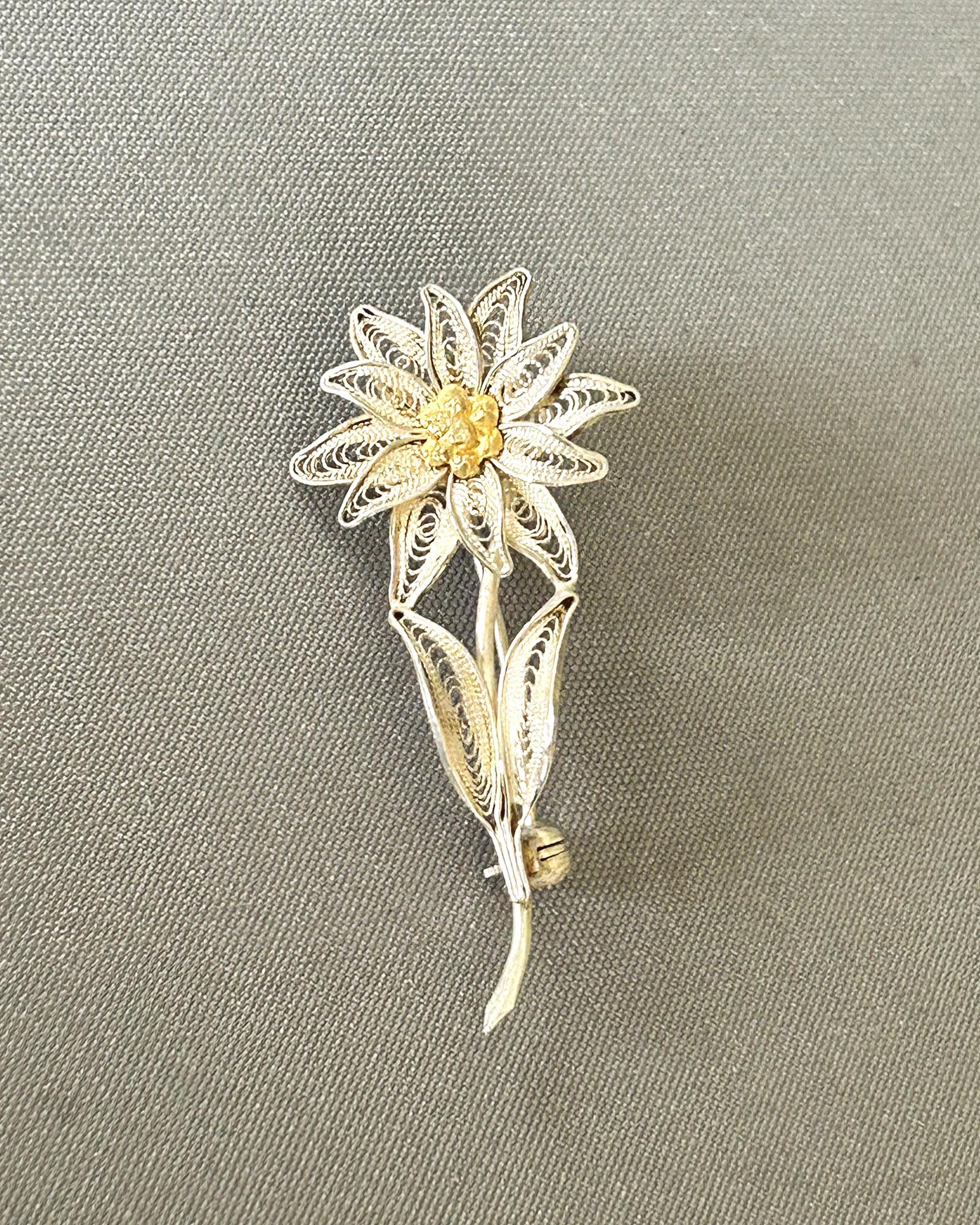 Mid Century Silver & Gold Filigree Flower Brooch (1 of 4)
