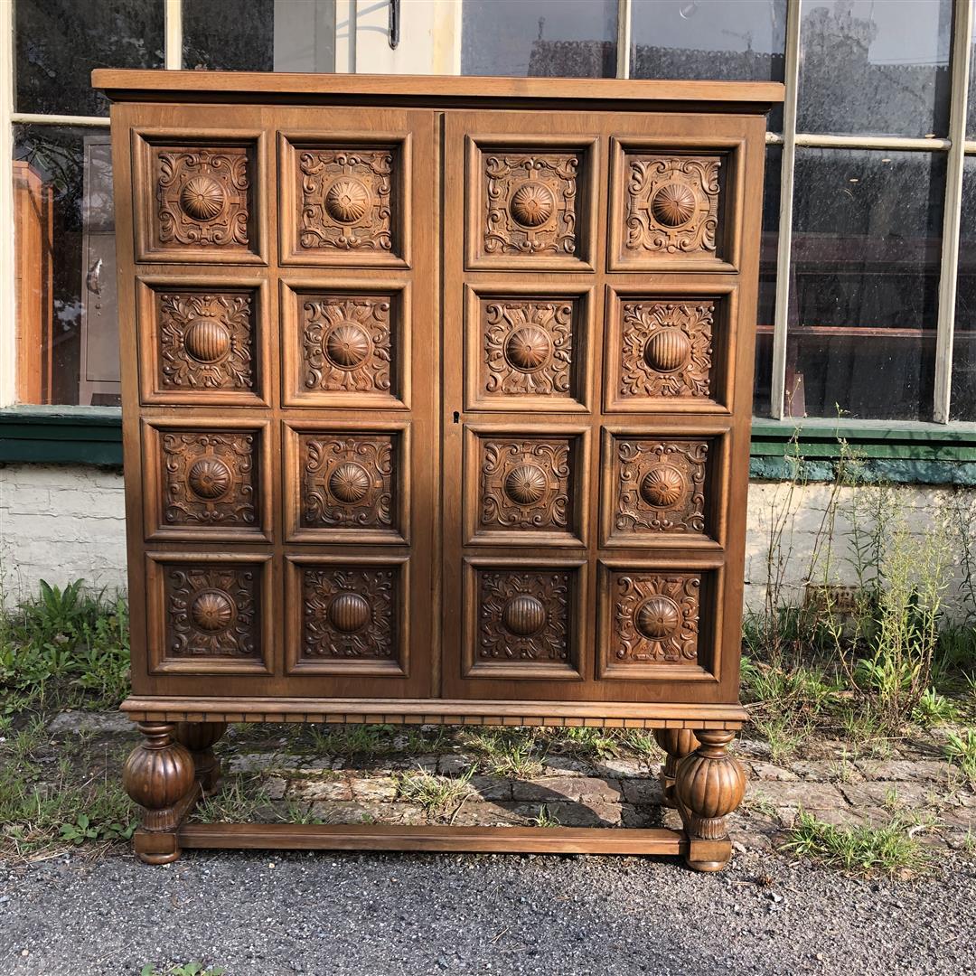 Mid Century Spanish Carved Panelled Cupboard 1950s