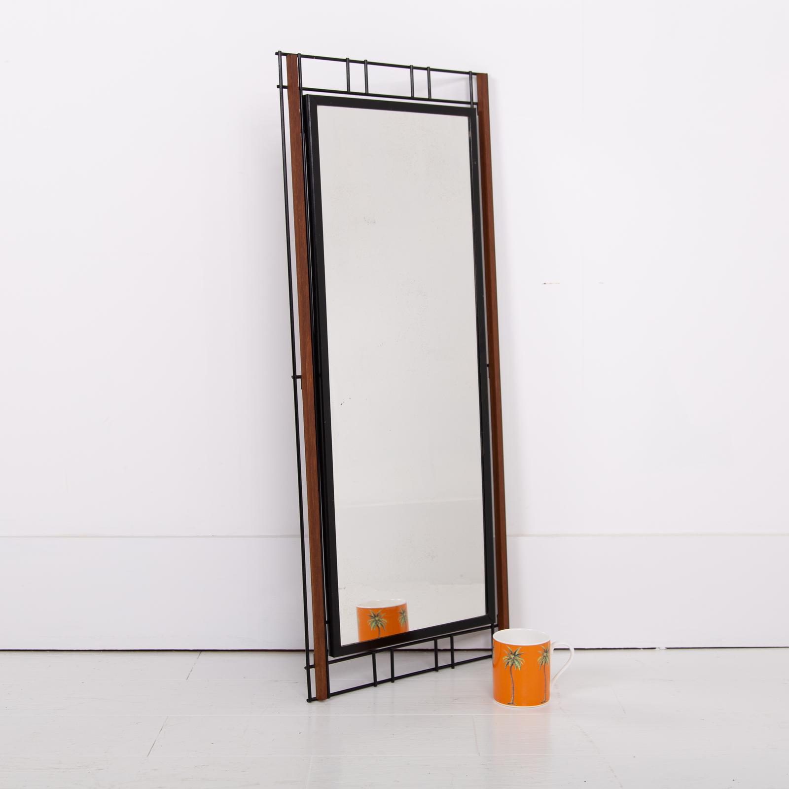 Mid Century Teak & Black Steel Wall Mirror