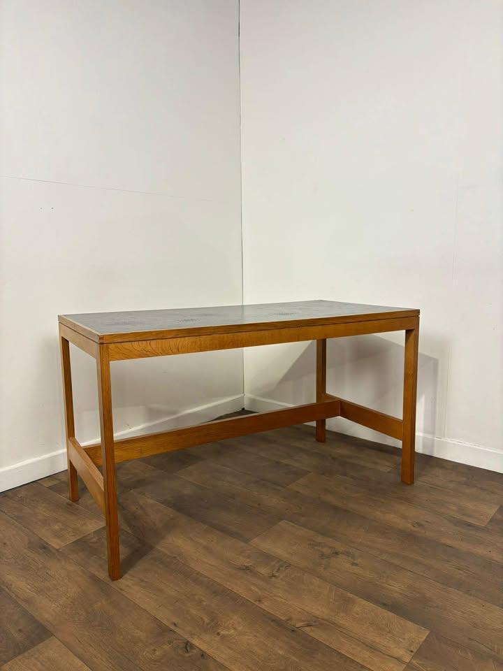 Mid Century Teak Desk - Black Top Vintage Writing Desk / Table