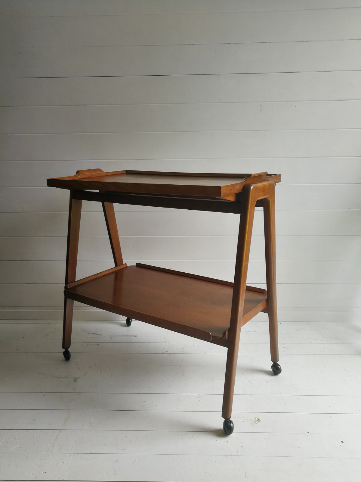 Mid Century Teak Serving Hostess Trolley Drinks Cart with a Removable Tray. 1960s