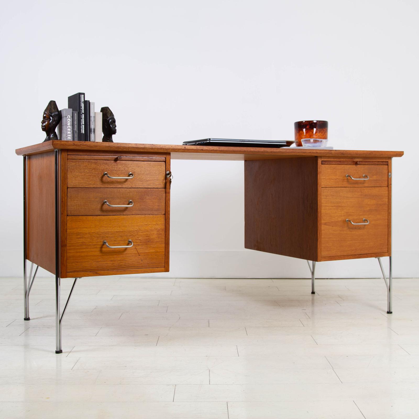 Mid Century Teak & Steel Twin Pedestal Desk by Heinrich Roepstorff (1 of 16)