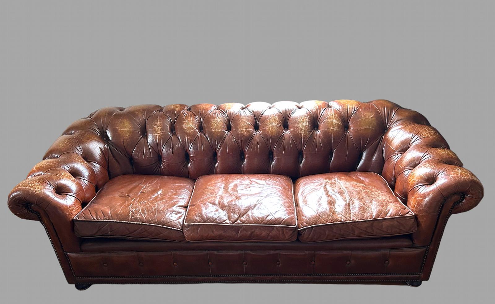 Mid Century Three Seater Leather Brown Chesterfield (1 of 4)