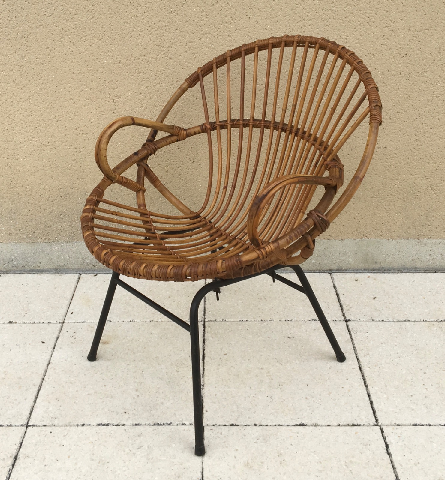 Mid Century Vintage Wicker Bamboo Tub Chair