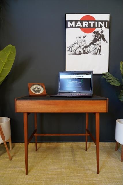 Mid Century Writing Desk Teak Black Vinyl Writing Pad