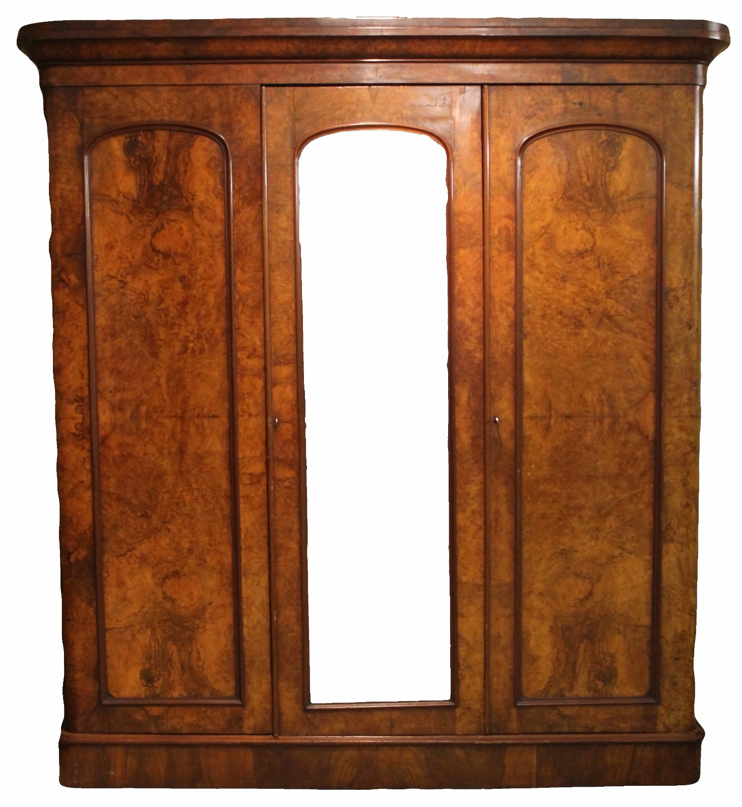Mid-Victorian Burr Walnut Three Door Wardrobe
