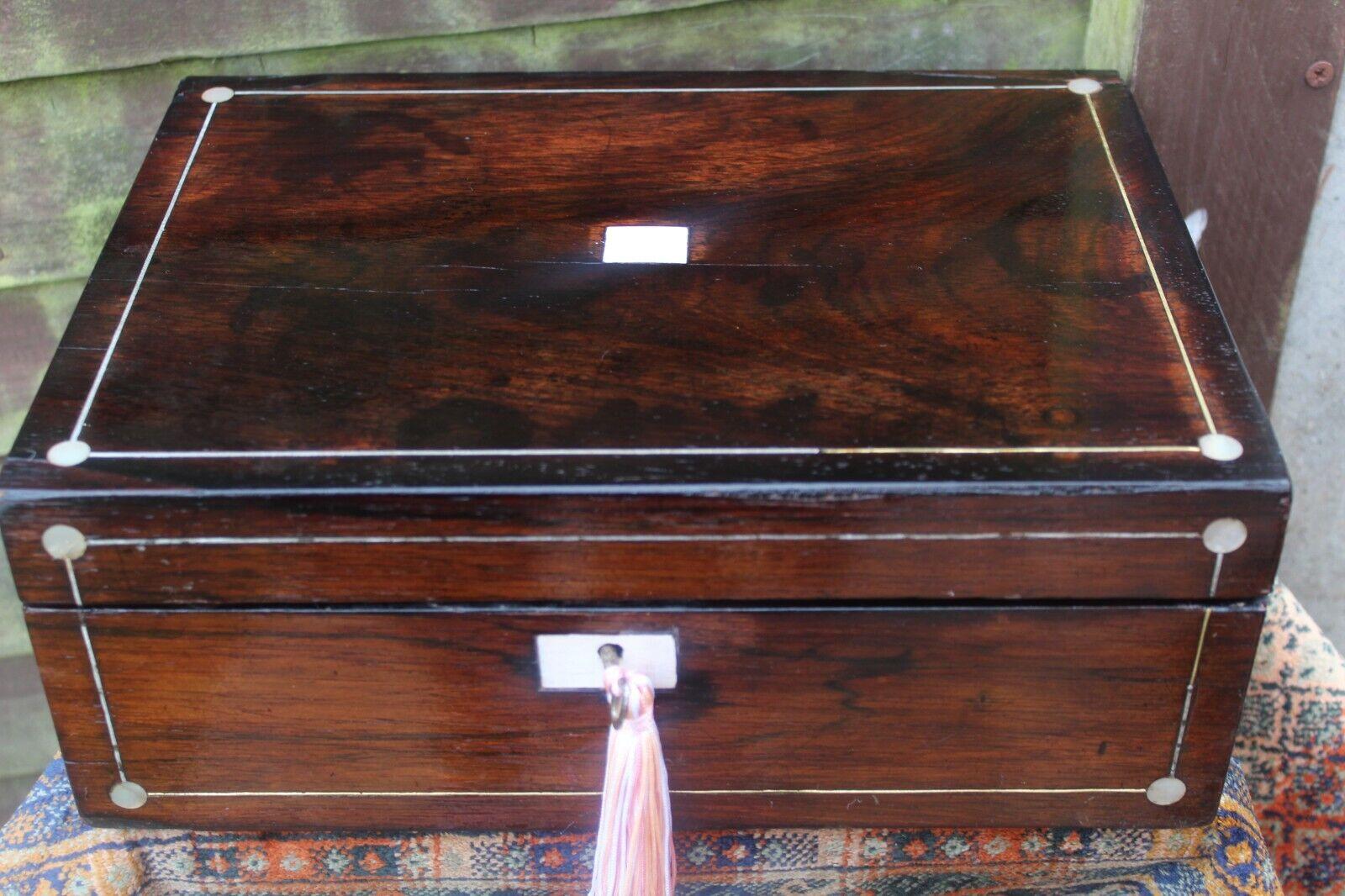 Mid Victorian C1860 Rosewood With Mother OF Pearl Inlay Jewellery Box
