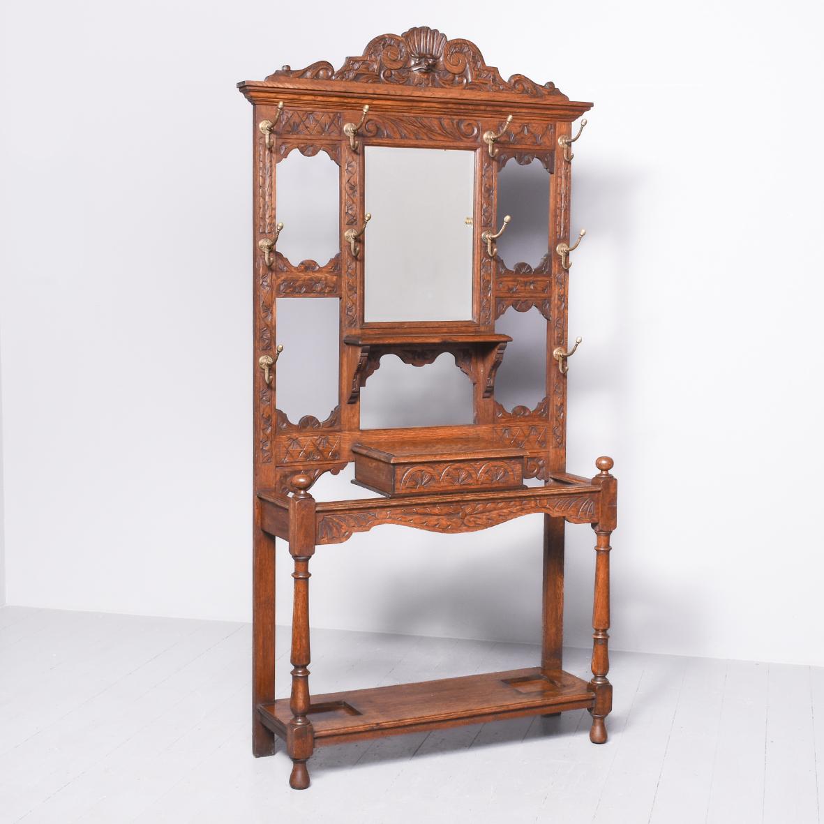 Mid Victorian Carved Oak Green Man Hall Stand