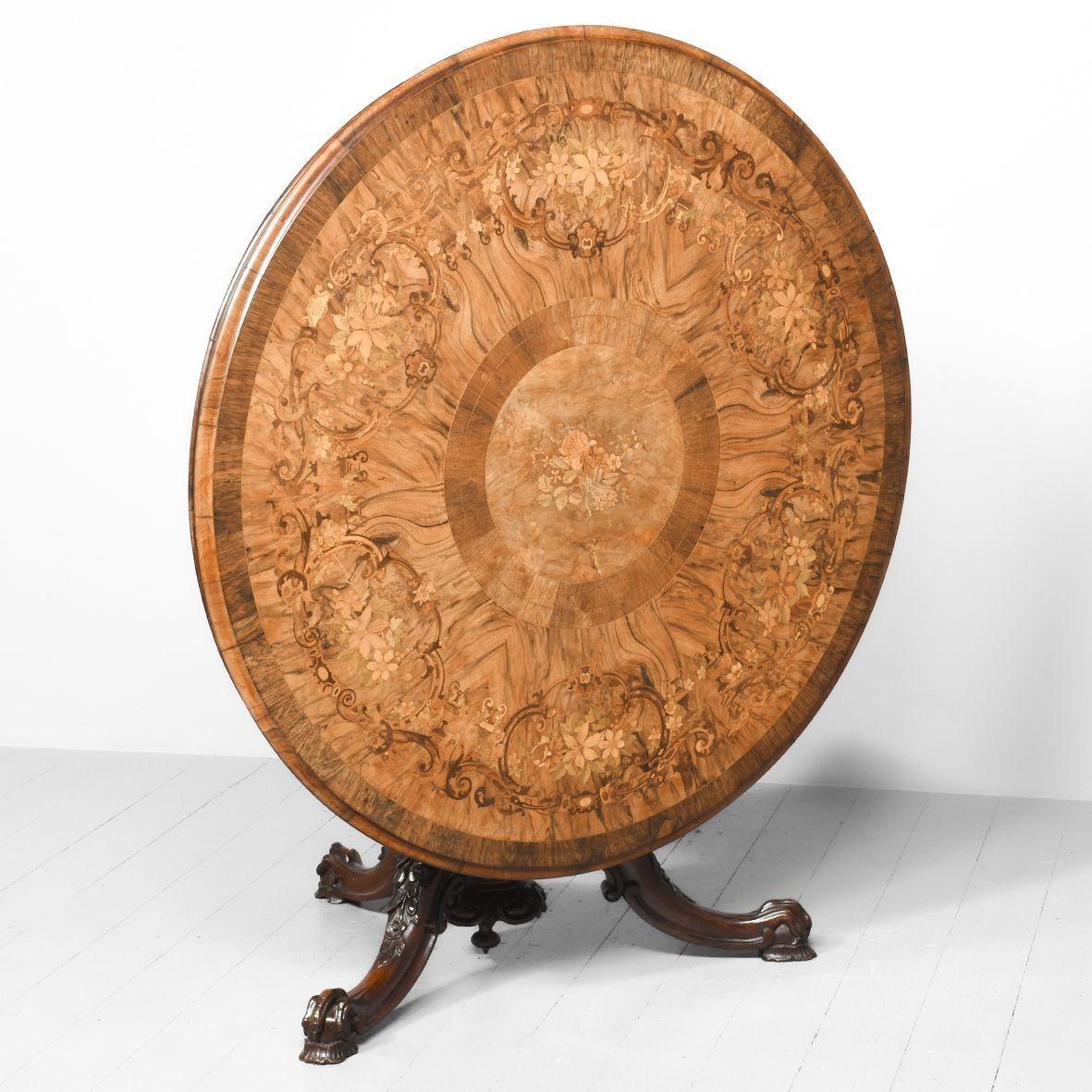 Mid Victorian Floral Marquetry Walnut & Rosewood Circular Breakfast Table (1 of 11)