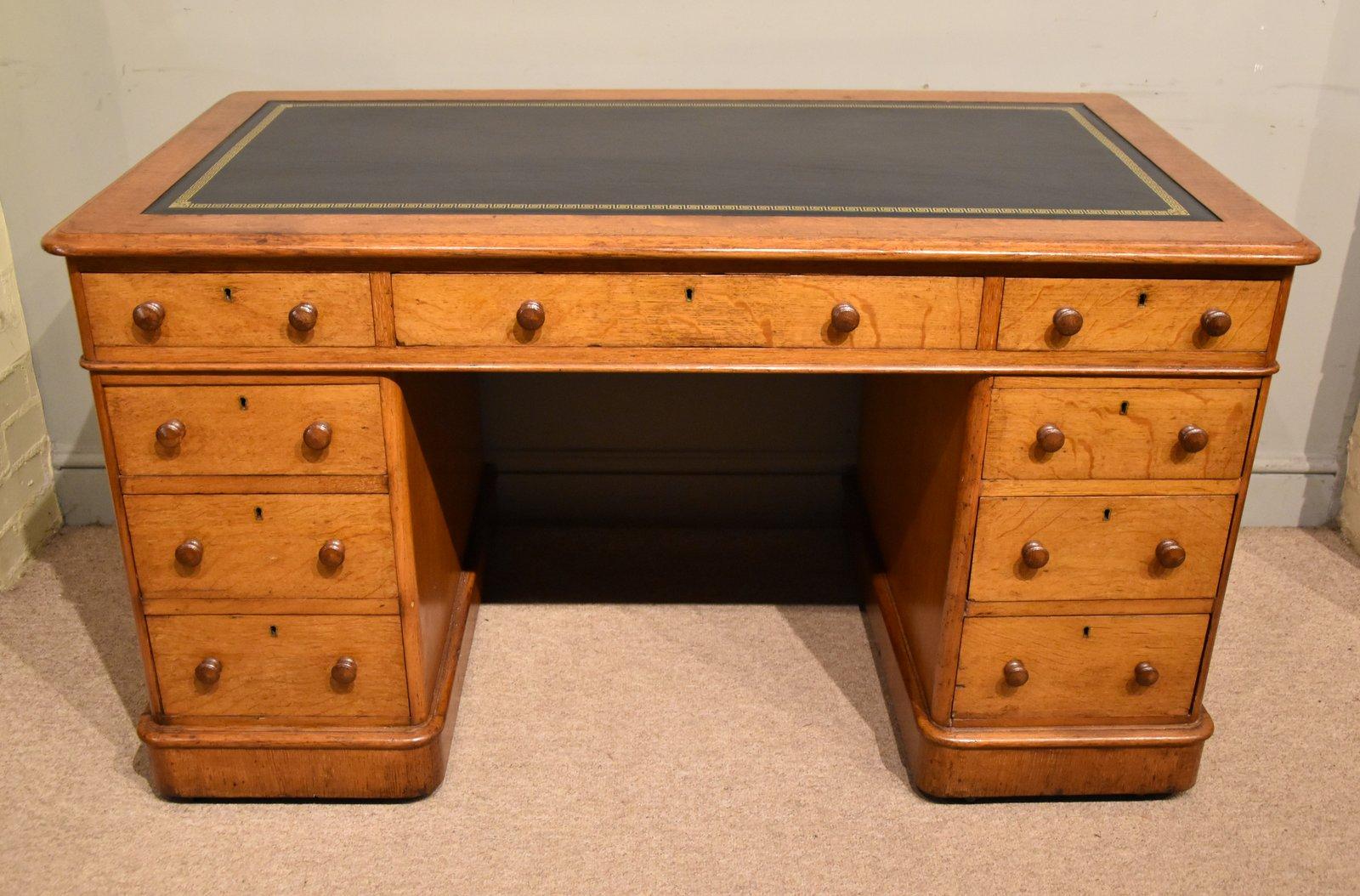 Mid Victorian Oak Kneehole Desk with Nine Drawers (1 of 7)