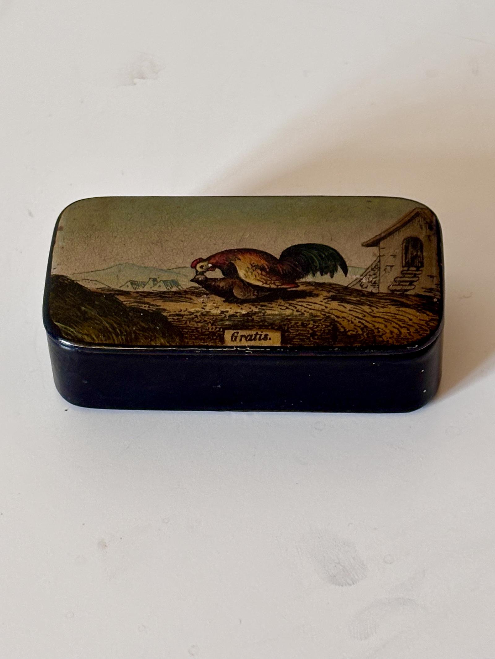 Mid Victorian Papier Mache Mating Cock & Hen Scene Snuff Box Antique c.1840