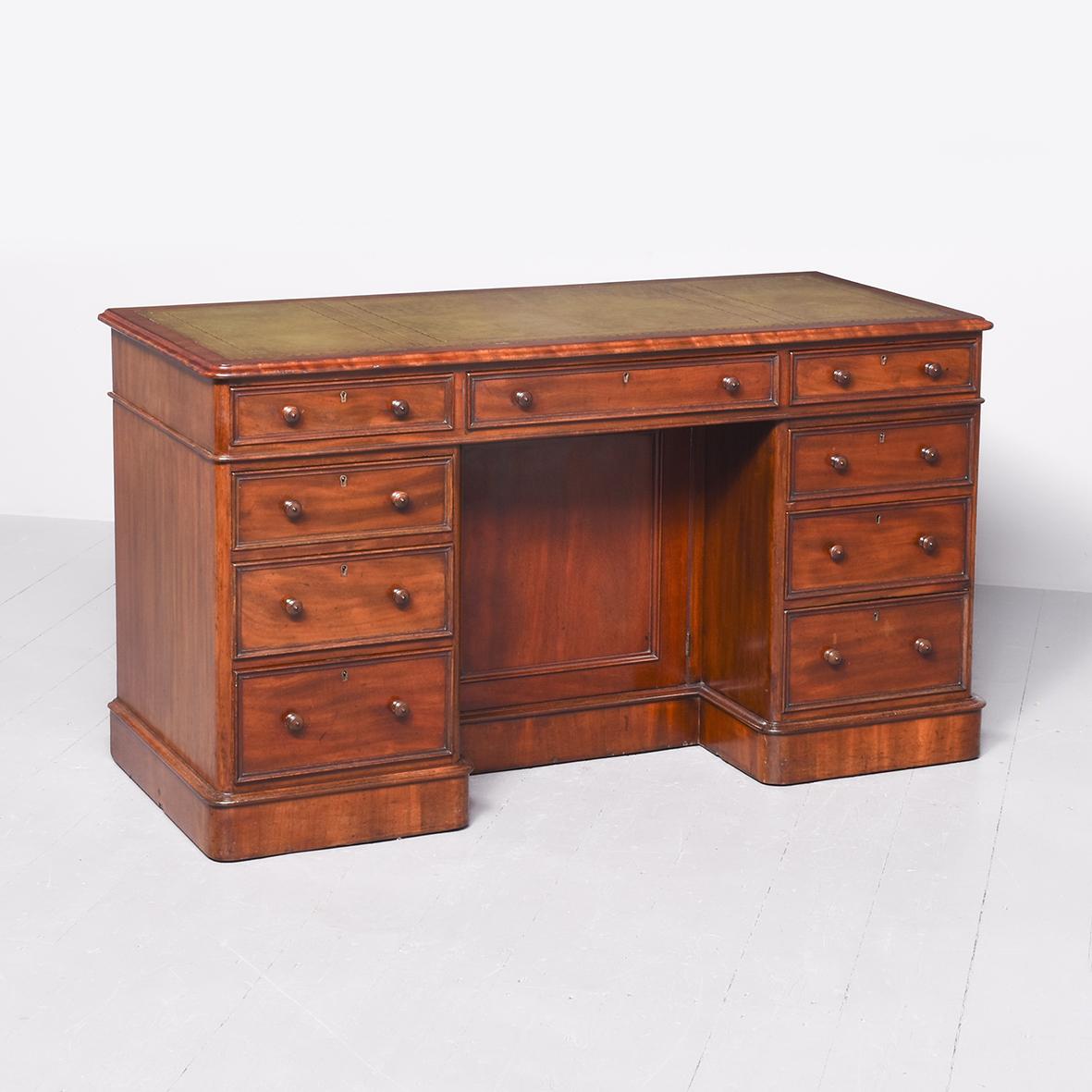 Mid Victorian Quality Mahogany Two-part Pedestal Desk