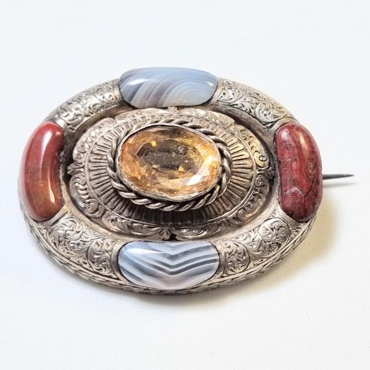 Mid Victorian Scottish Celtic Multi Stone Brooch - No/649