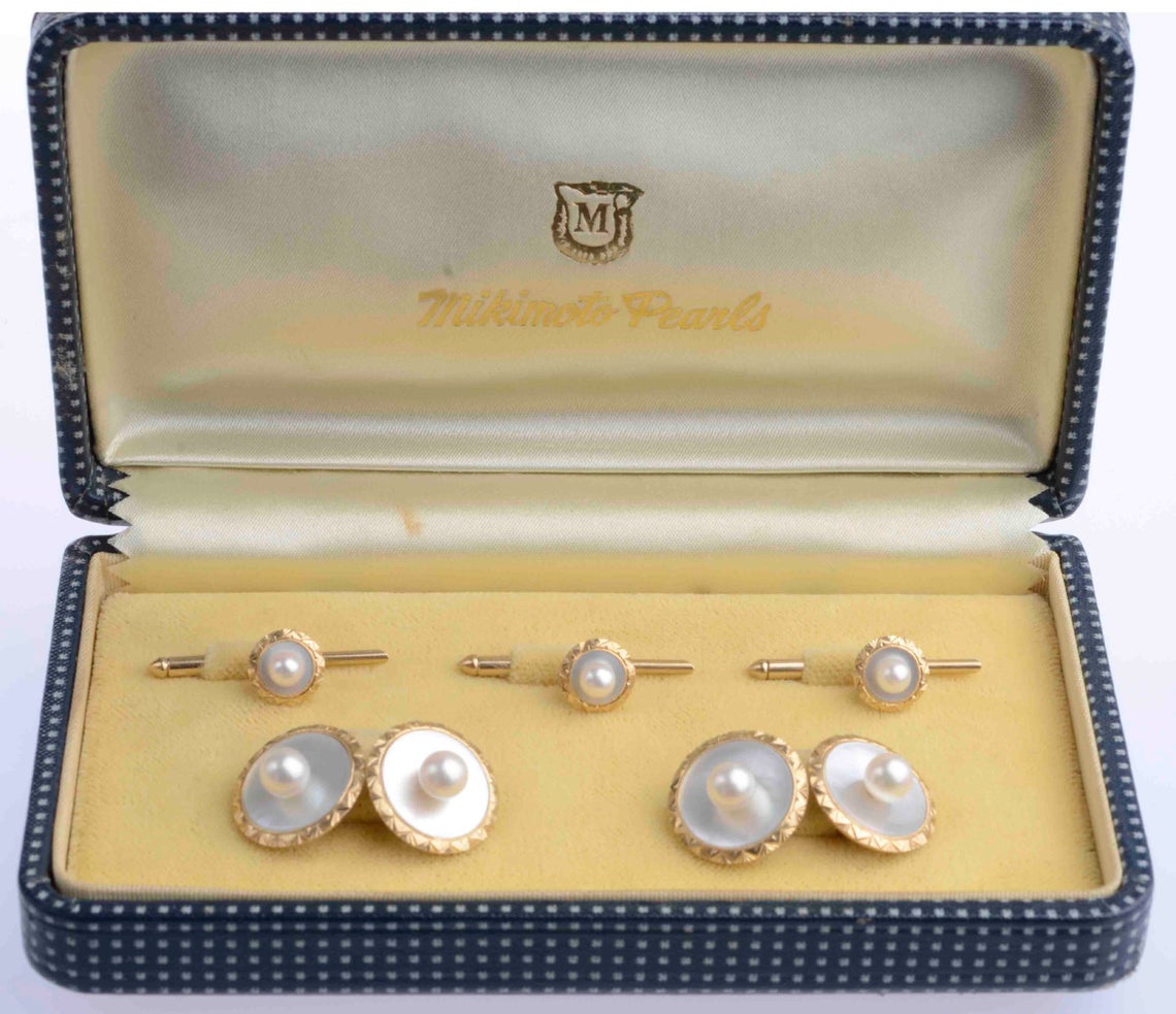 Mikimoto 14K Akoya & Mother of Pearl Dress Set