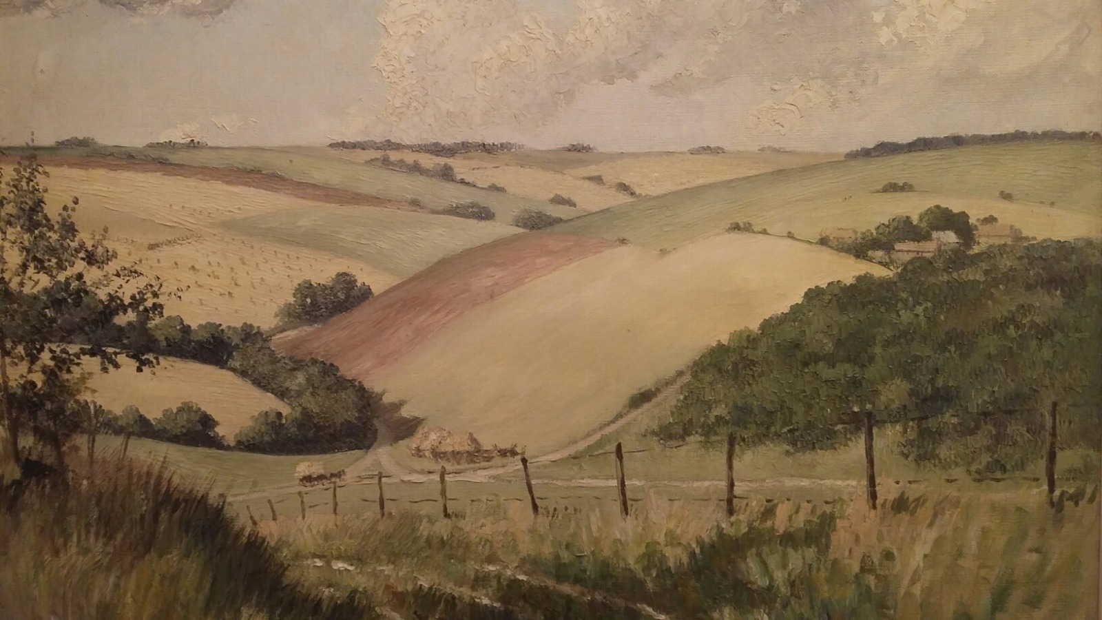 'Mildenhall Borders' Oil Painting by Christopher Hughes Signed & Dated 1945