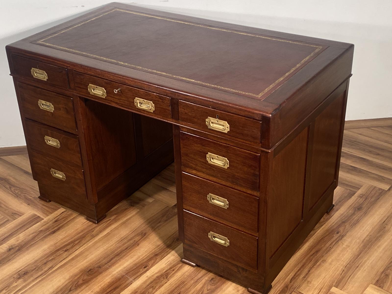 Military Campaign Mahogany Writing Desk Burgundy Leather Inlay