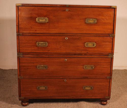 Alain Michel Antiques has clarified that the Military or Campaign Chest of Drawers in Blond Mahogany with Secretary - 19th Century (LA530665) is genuinely of the period declared with the date/period of manufacture being 19th Century