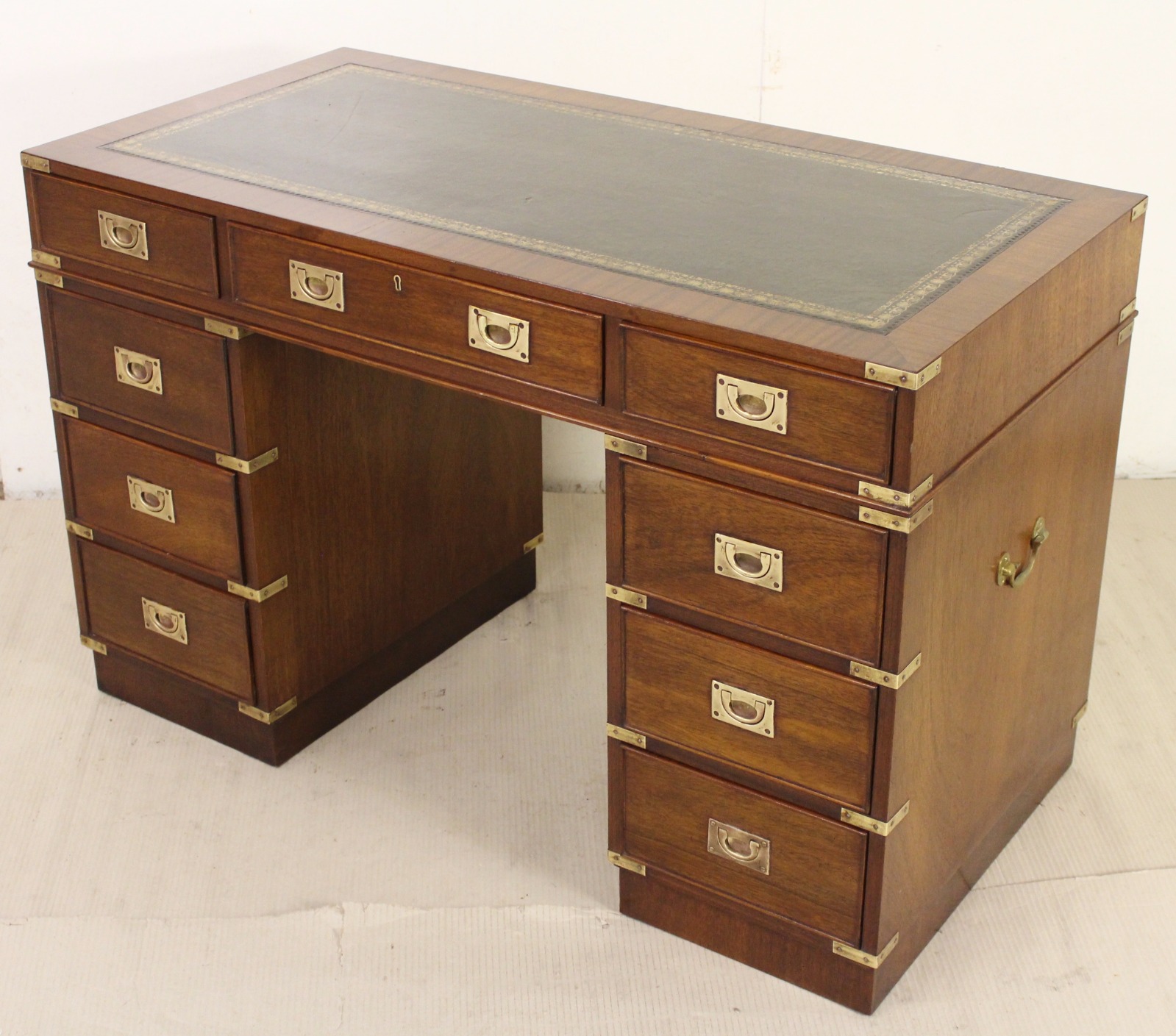 Military Style Mahogany Pedestal Desk (1 of 1)