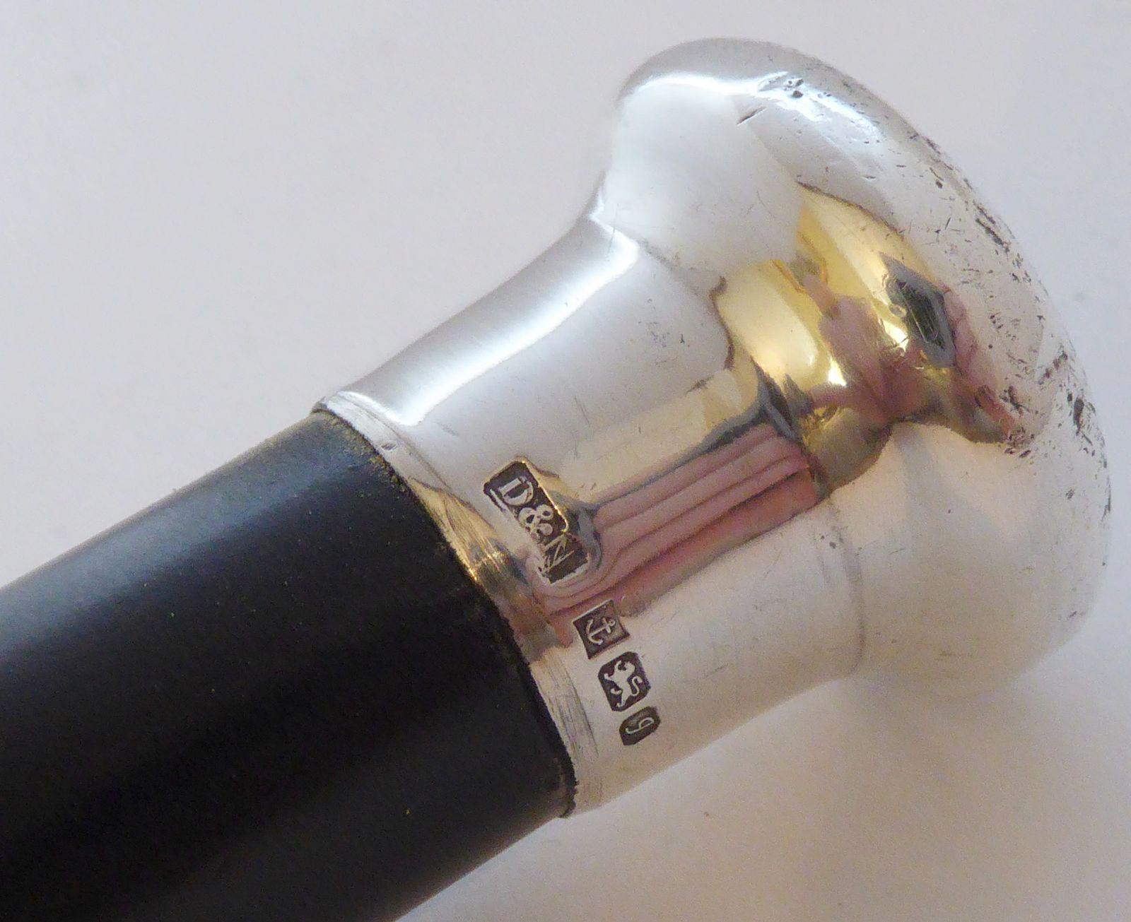 Military Walking Stick Cane Hallmarked Solid Silver Pommel Ebonised Wood Shaft