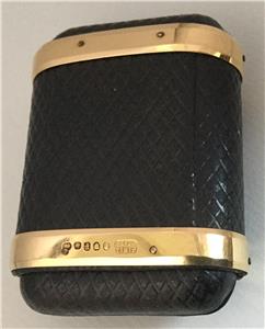 Miniature 18K Gold Banded Leather Cigar Case Hallmark & Patented London 1870