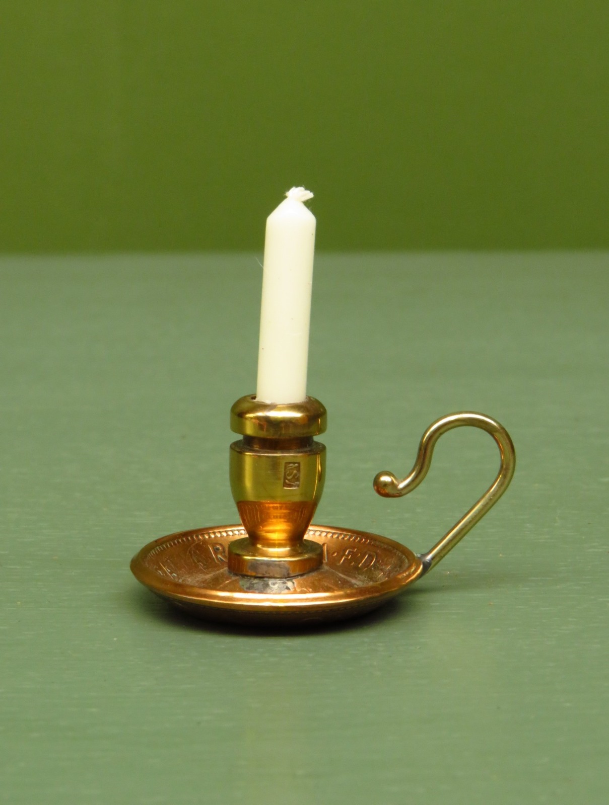 Miniature Chamberstick Candle Holder Crafted from a Penny