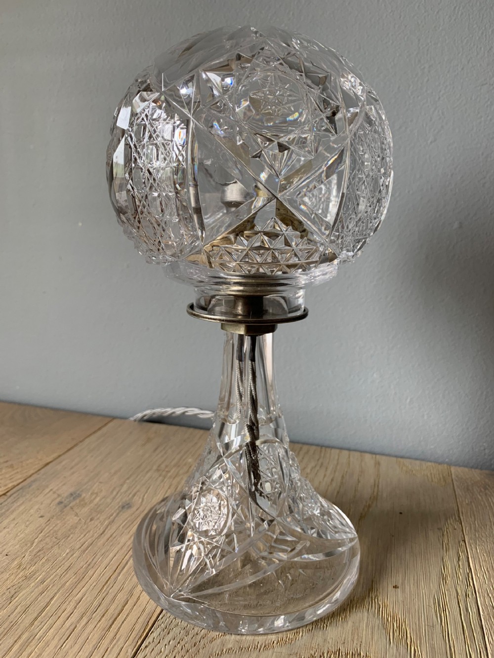 Miniature Early Cut Glass Crystal Mushroom Table Lamp, Rewired & PAT Tested